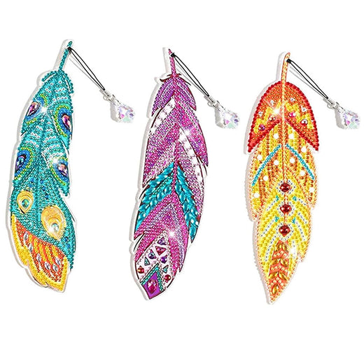 5D Diamond Painting Lesezeichen – Glanzfedern im 3er-Set, Unique-Diamond